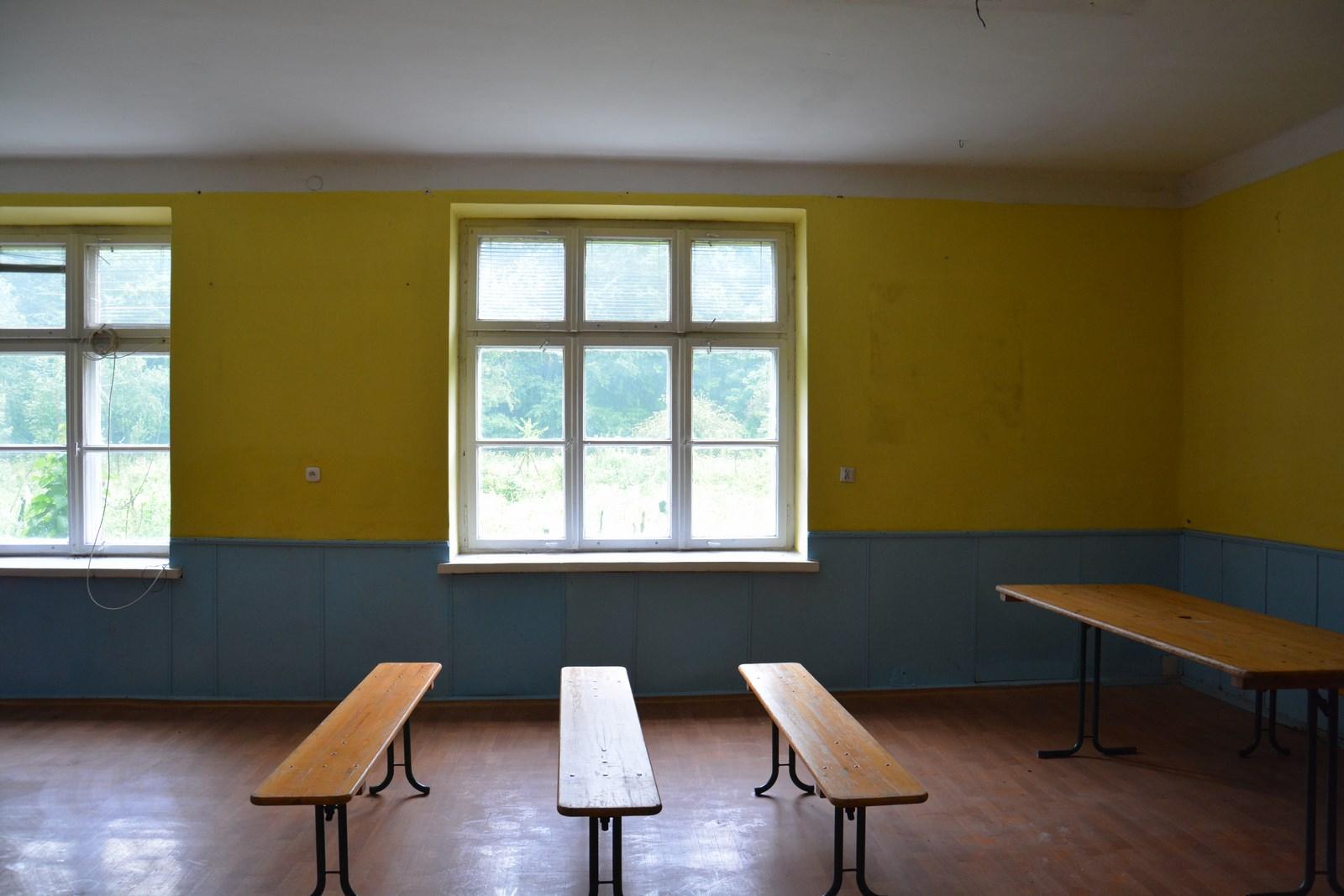 The abandoned preschool facility is located on the ground floor of the residential building in Nakło. Inside the facility there are several rooms that used to serve as: