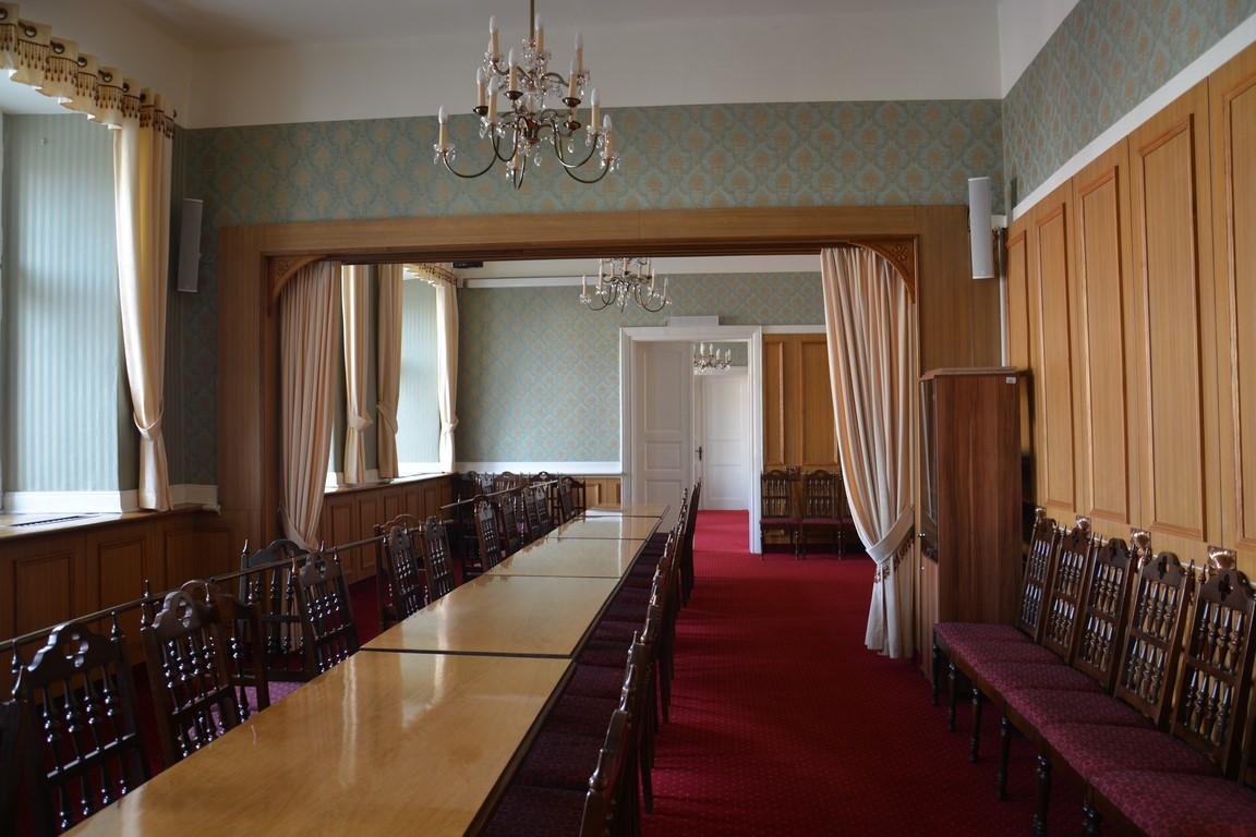 One of the rooms in the Registry Office in Wodzisław Śląski. Thanks to the large windows the room is well lit with natural light. The hall is large and spacious, equipped with: