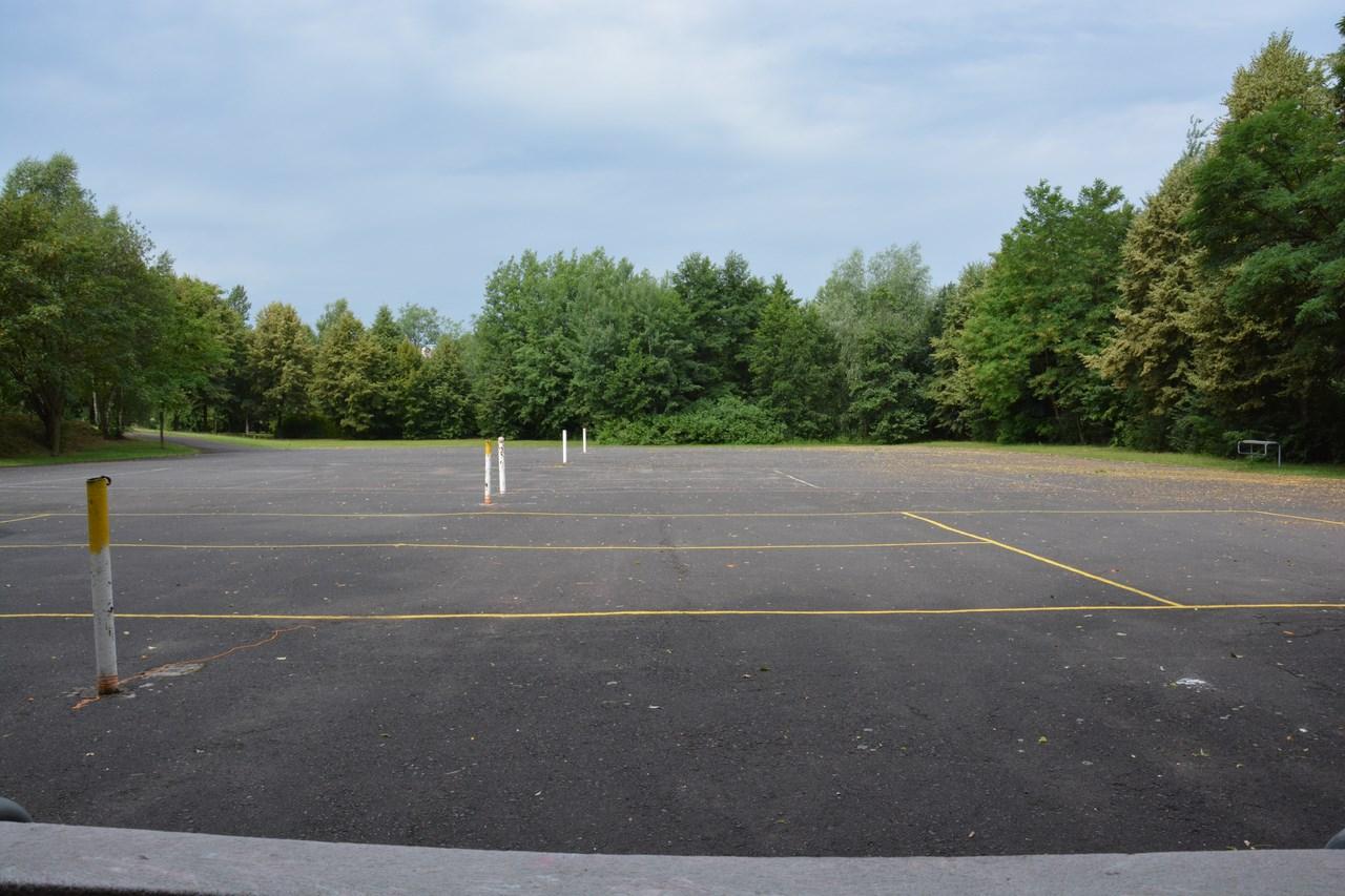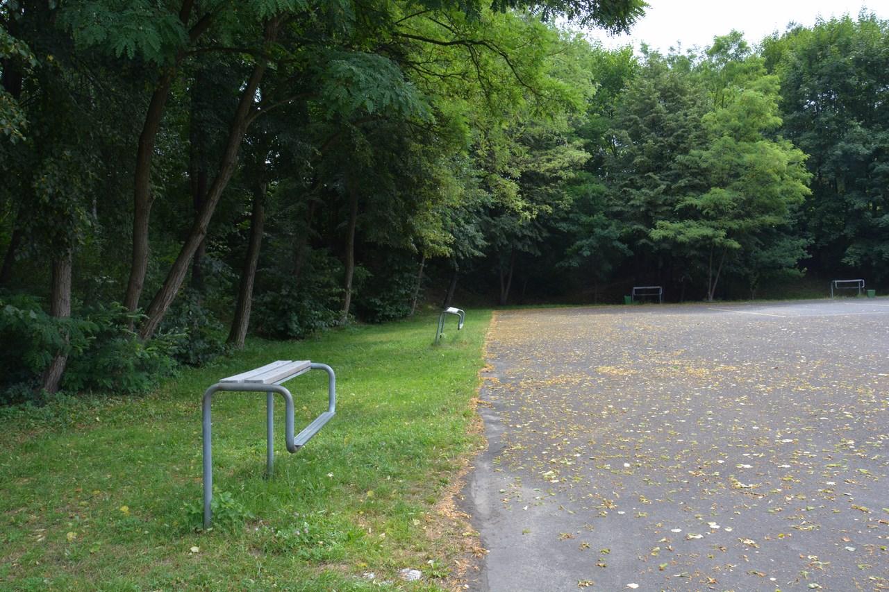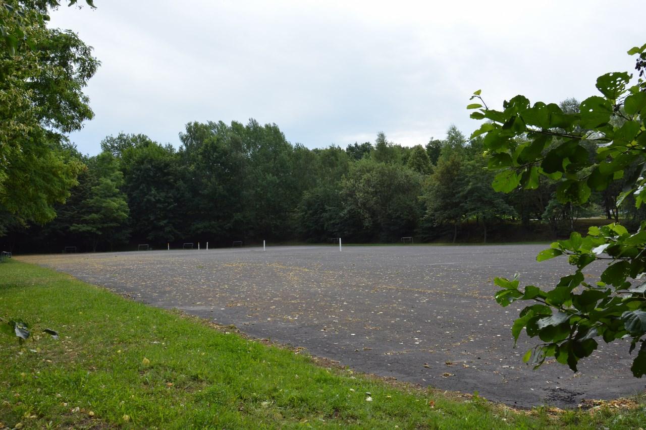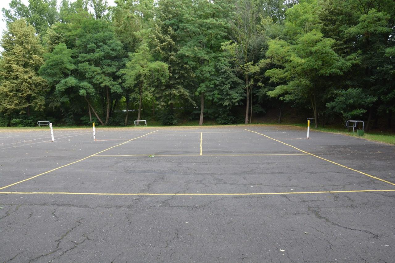 It is a concrete area surrounded by the benches. Two outlines of the tennis courts are visible on its premises. The courts do not have nets but there is possibility of installing one.
