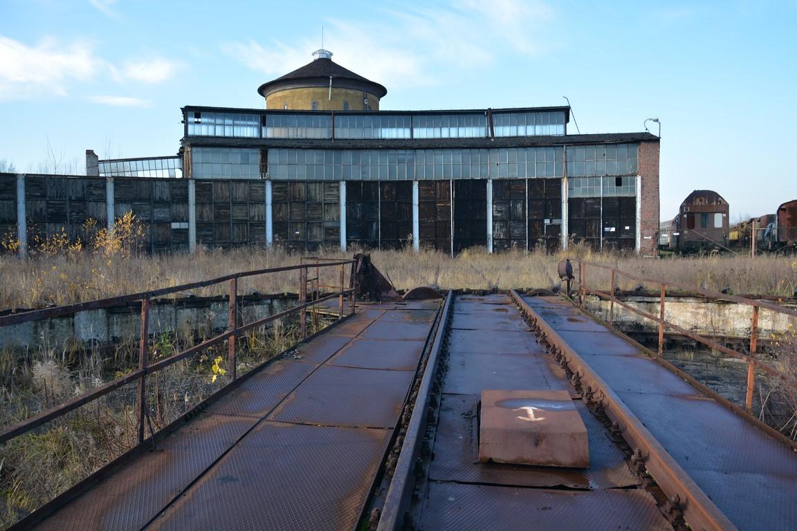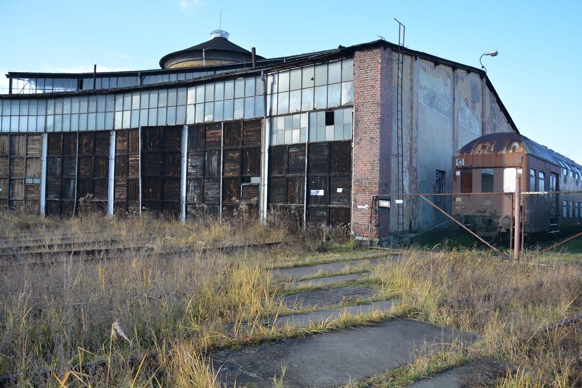 Located in the open-air Railway Museum in Pyskowice. The building’s construction in made up of sheet metal with the number of small windows. The interiors are spacious and not furnished. The old, rusted railroad switch is located just outside the depot’s main entrance with a small, shabby shed situated right next to it.