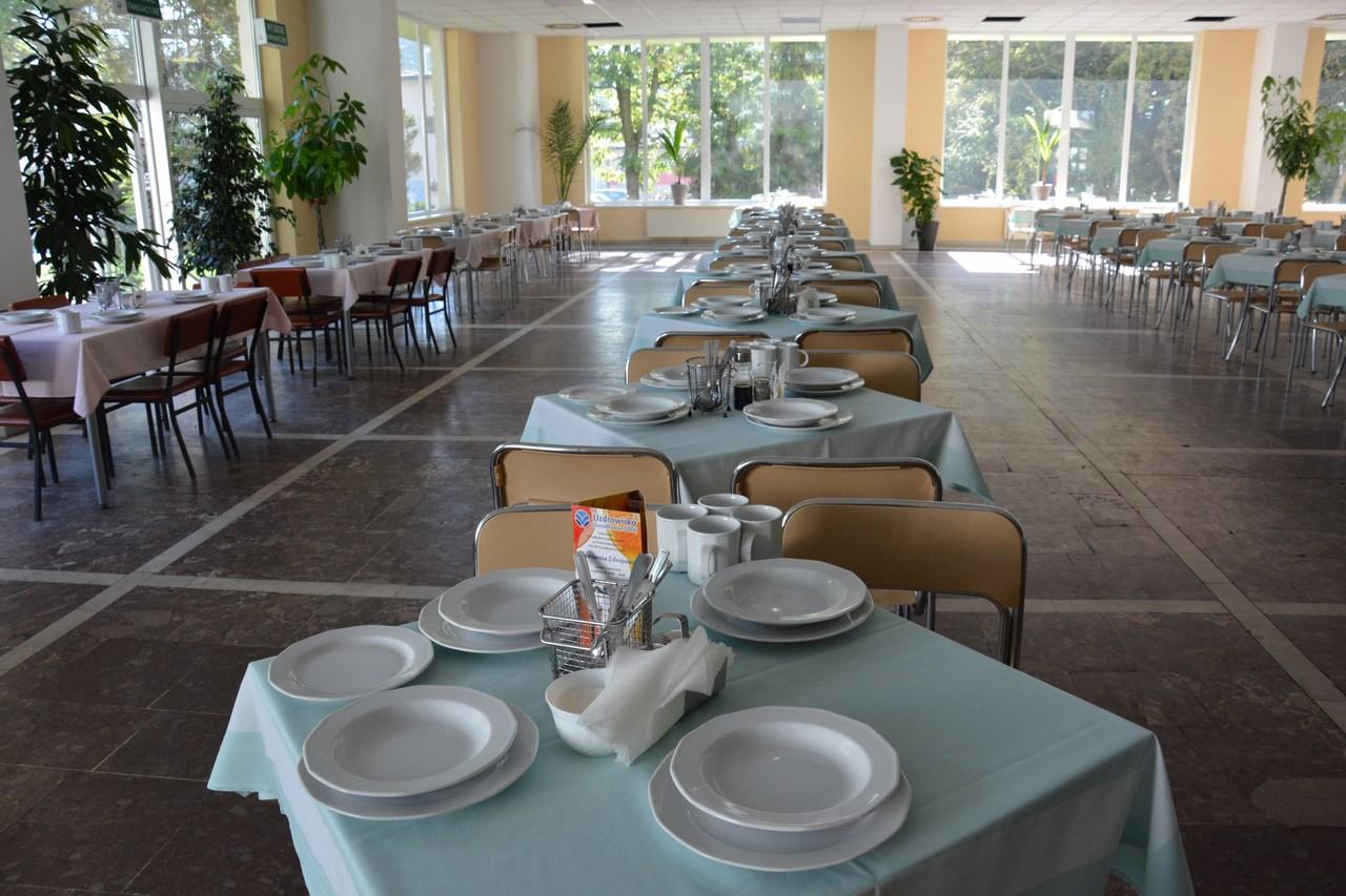 The dining area is located on the premises of the health recreation facility in Goczałkowice Zdrój and surrounded with a beautiful park.