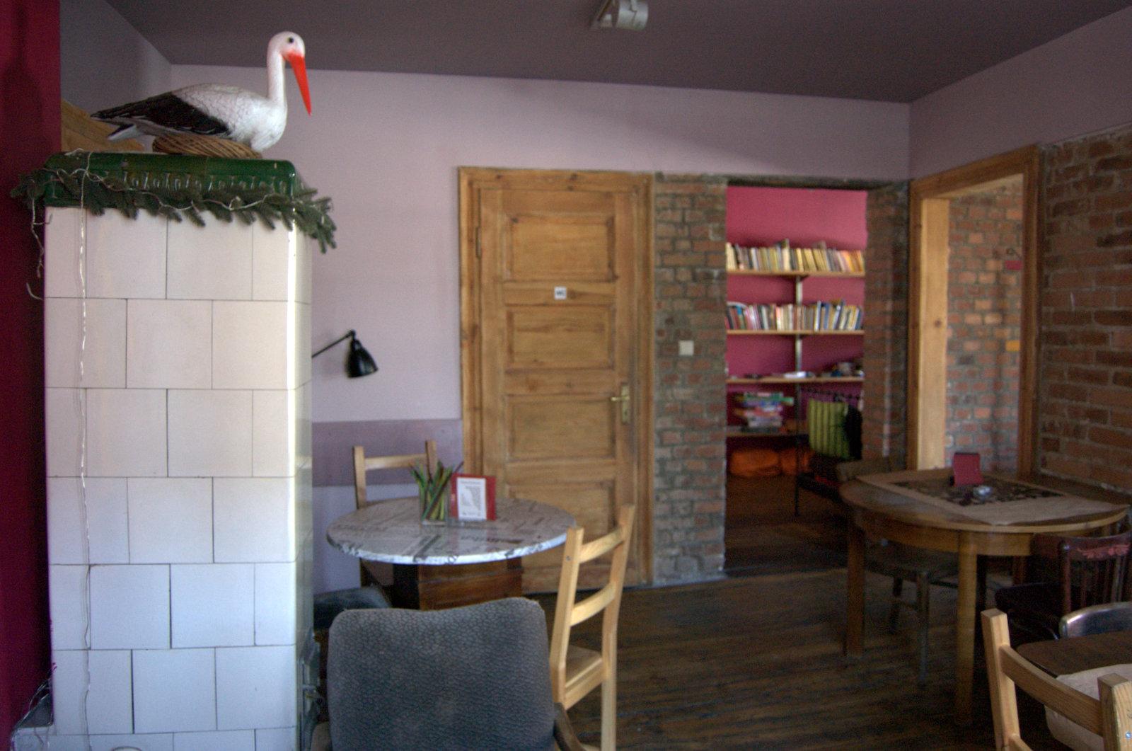 Atmosphere of the restaurant is a combination of many elements e.g. tiled stove, books, board games, stuffed stork.