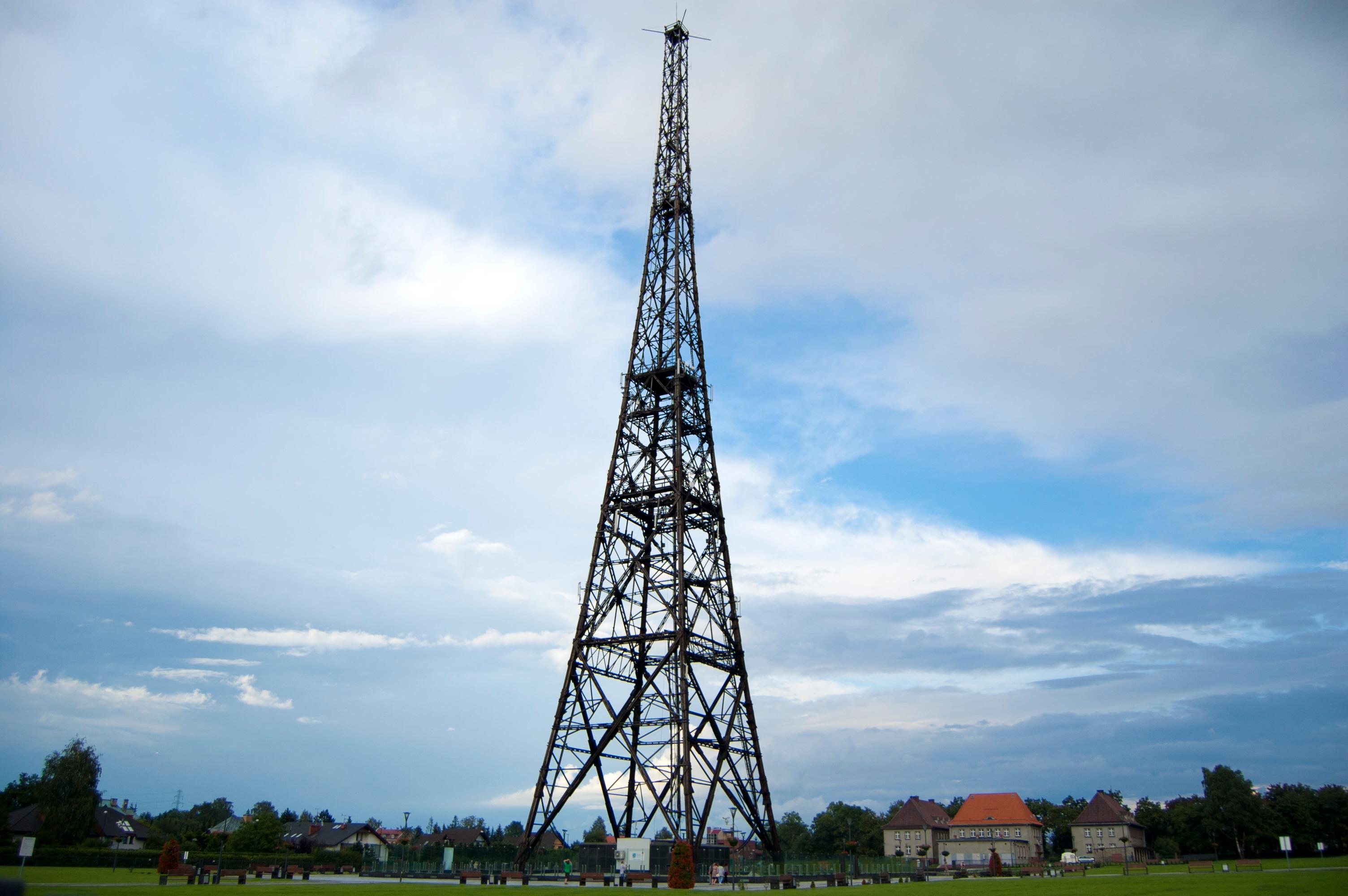 Gliwice Radio Tower was built in the middle of 1930s in Gliwice. It is made of larch wood and is welded with over 16,000 brass screws.