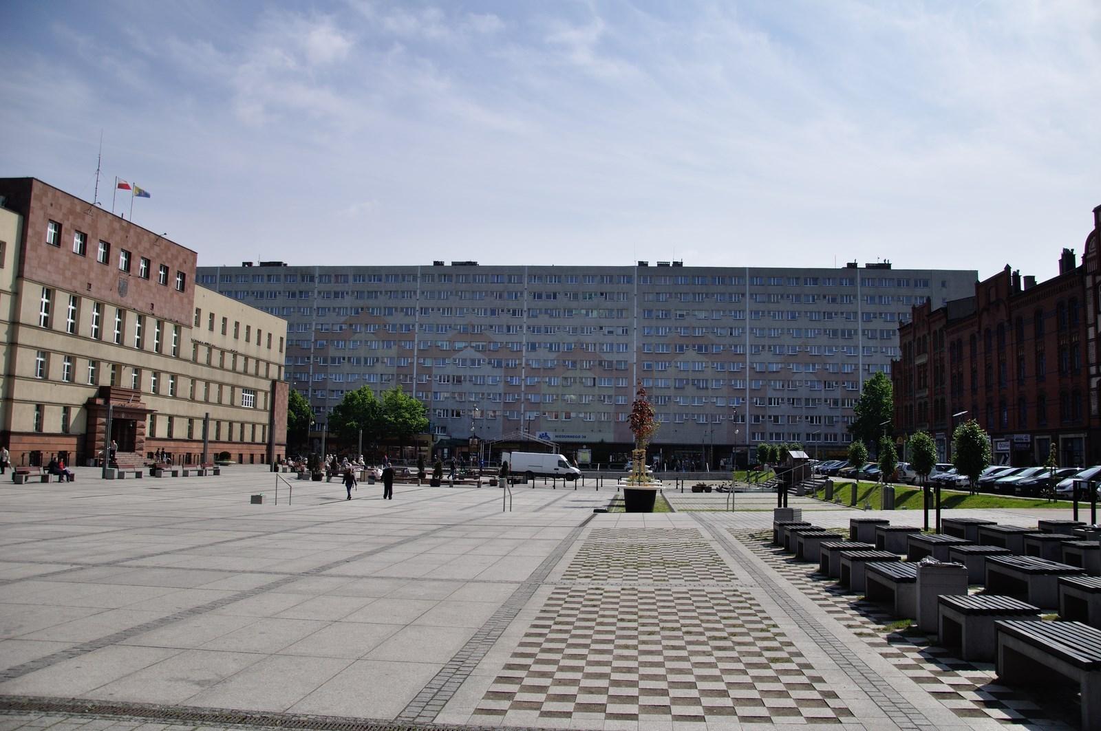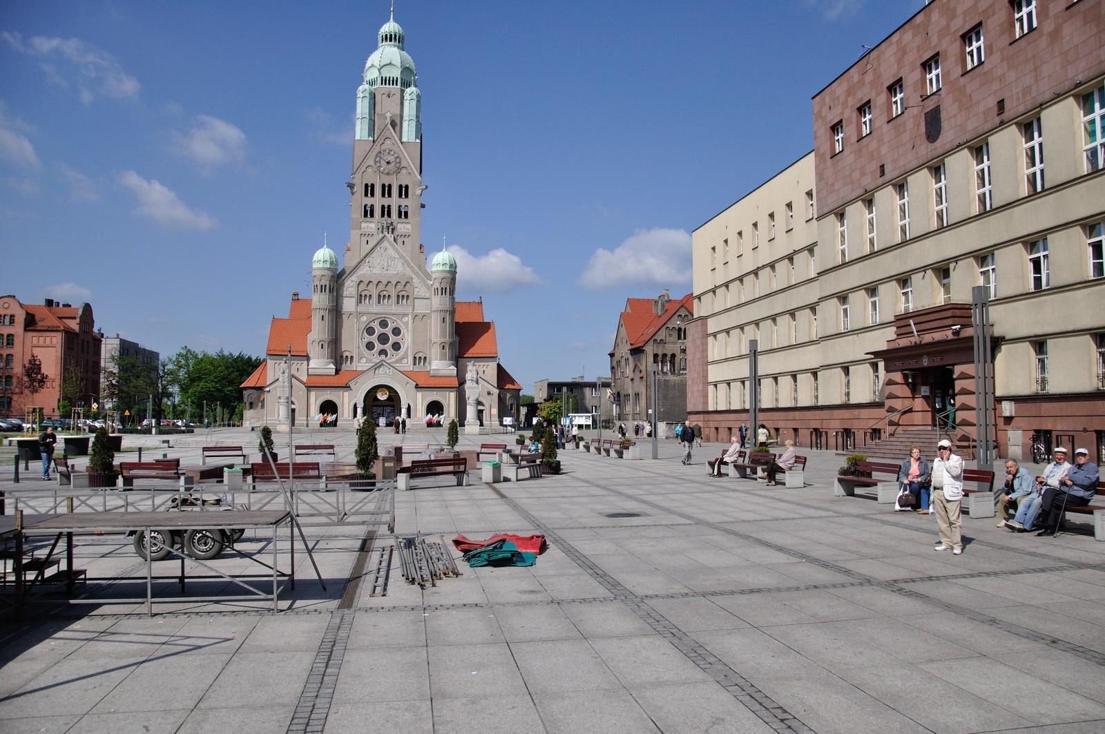 A renovated city’s square of Ruda Śląska is located in Nowy Bytom district. It is surrounded with the City Hall, Church of St. Paul, large panel housing project and characteristic tenement houses.
