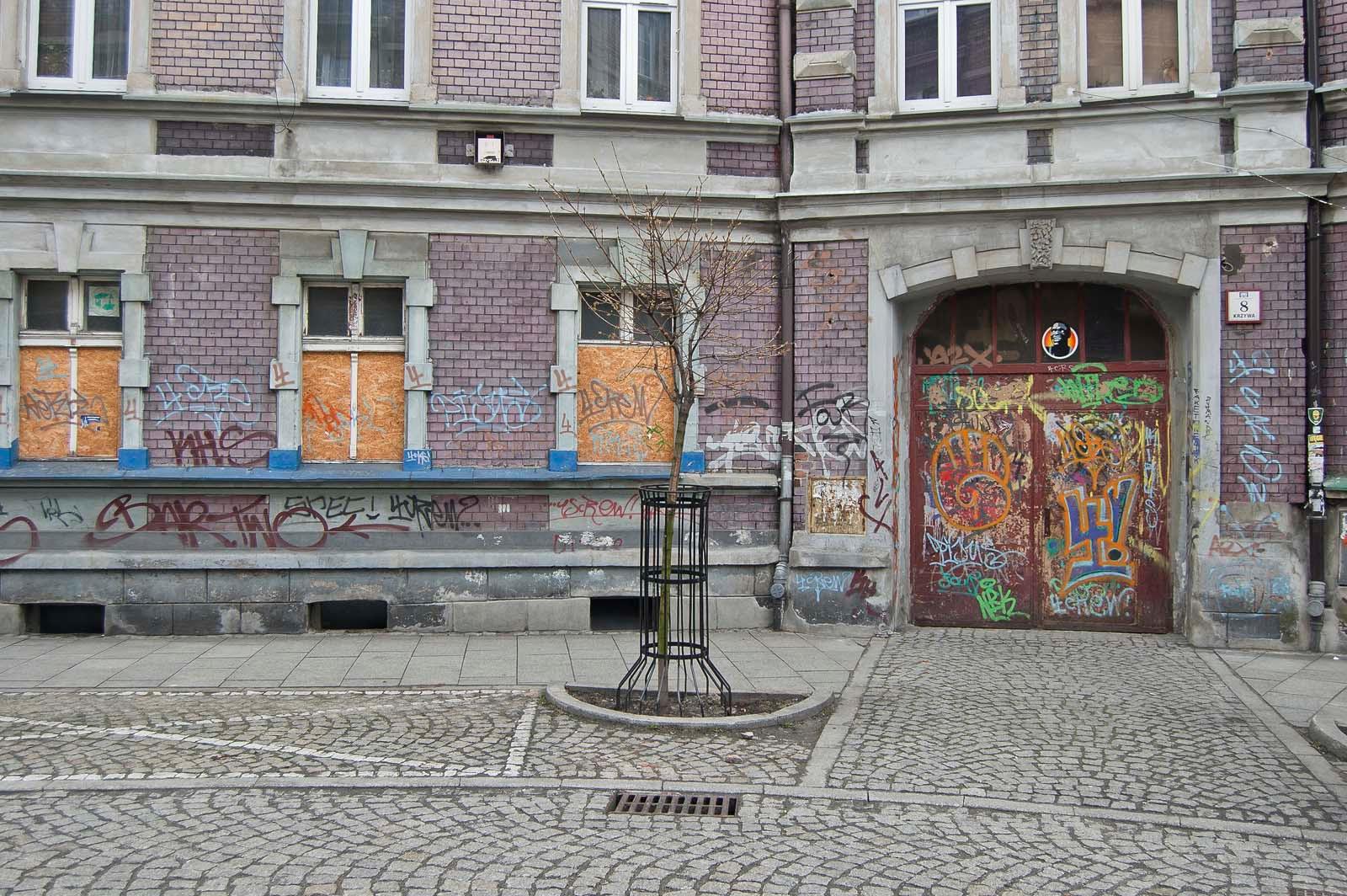 Krzywa street is located in the very centre of Katowice. Along the street typical Silesian tenements as well as retail outlets and shops are situated. Some of them have undergone renovation while the rest is clearly neglected and covered with graffiti.