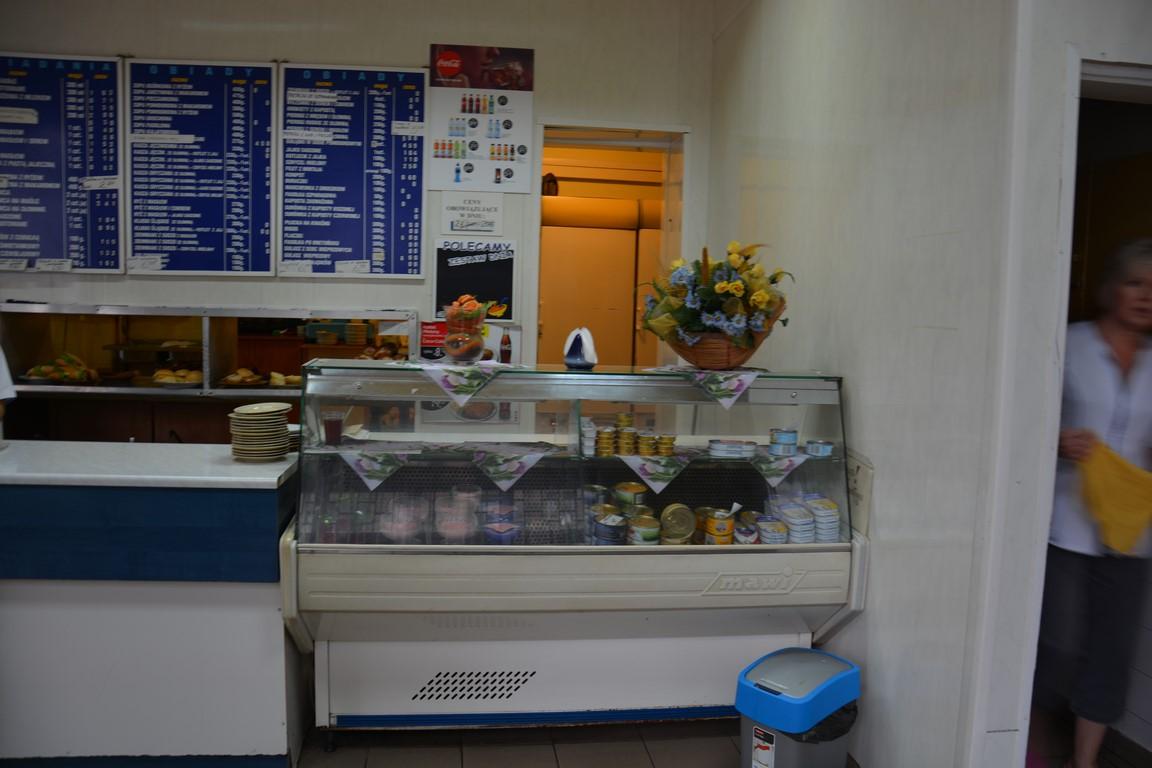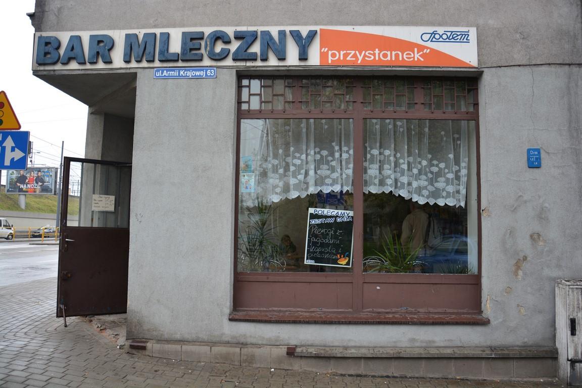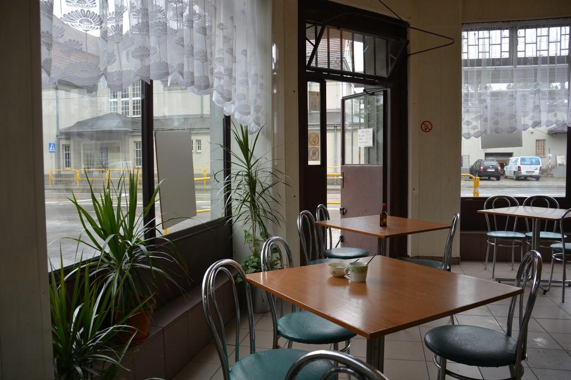 A milk bar is located on the ground floor of a tenement house in Chorzów, close to the Chorzów Batory railway station and the Sznajder confectionary. It is a spacious room. It consists of a dining space, trade area (where food is given out) and the back (kitchen), where dinners are prepared.