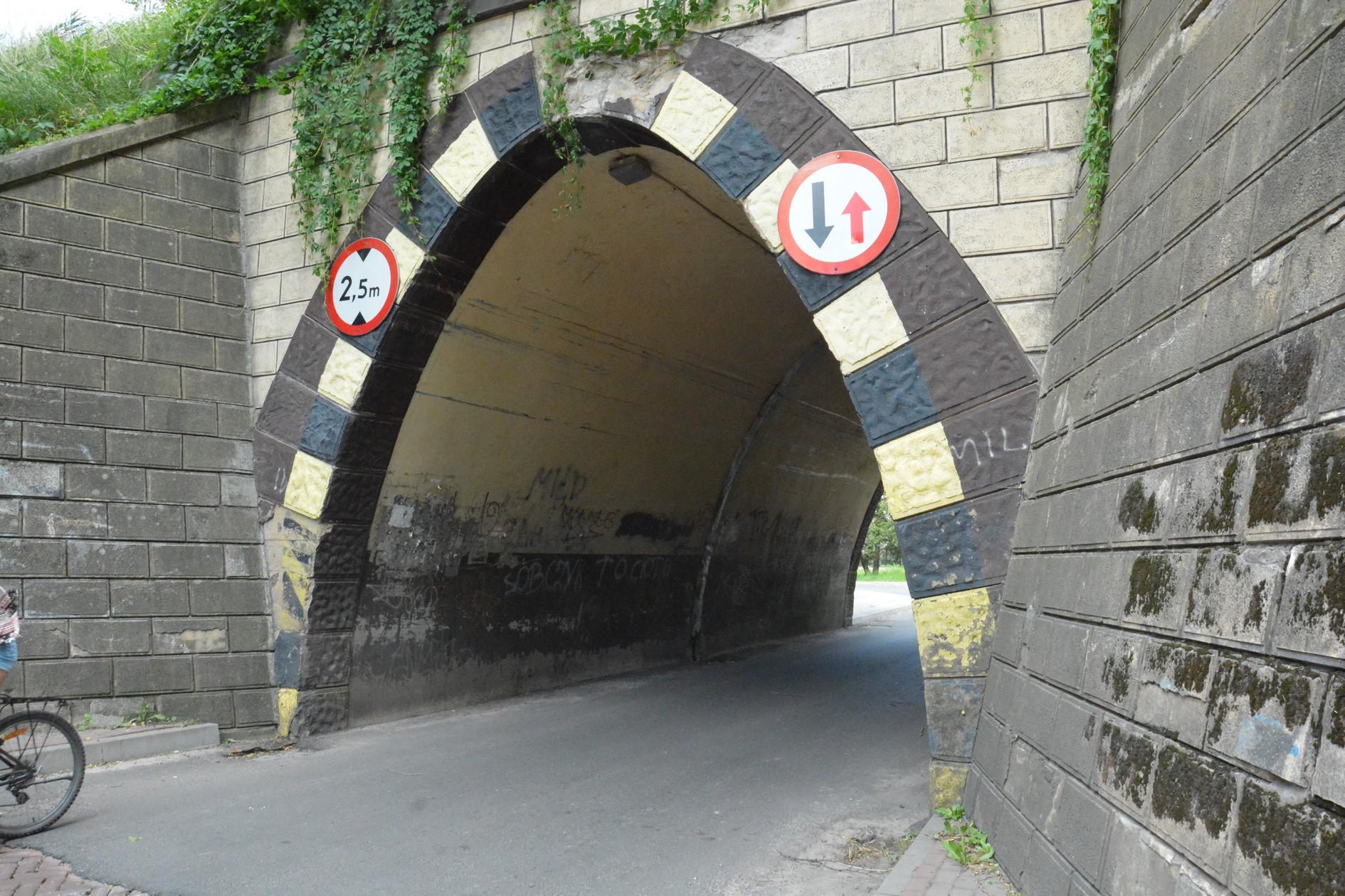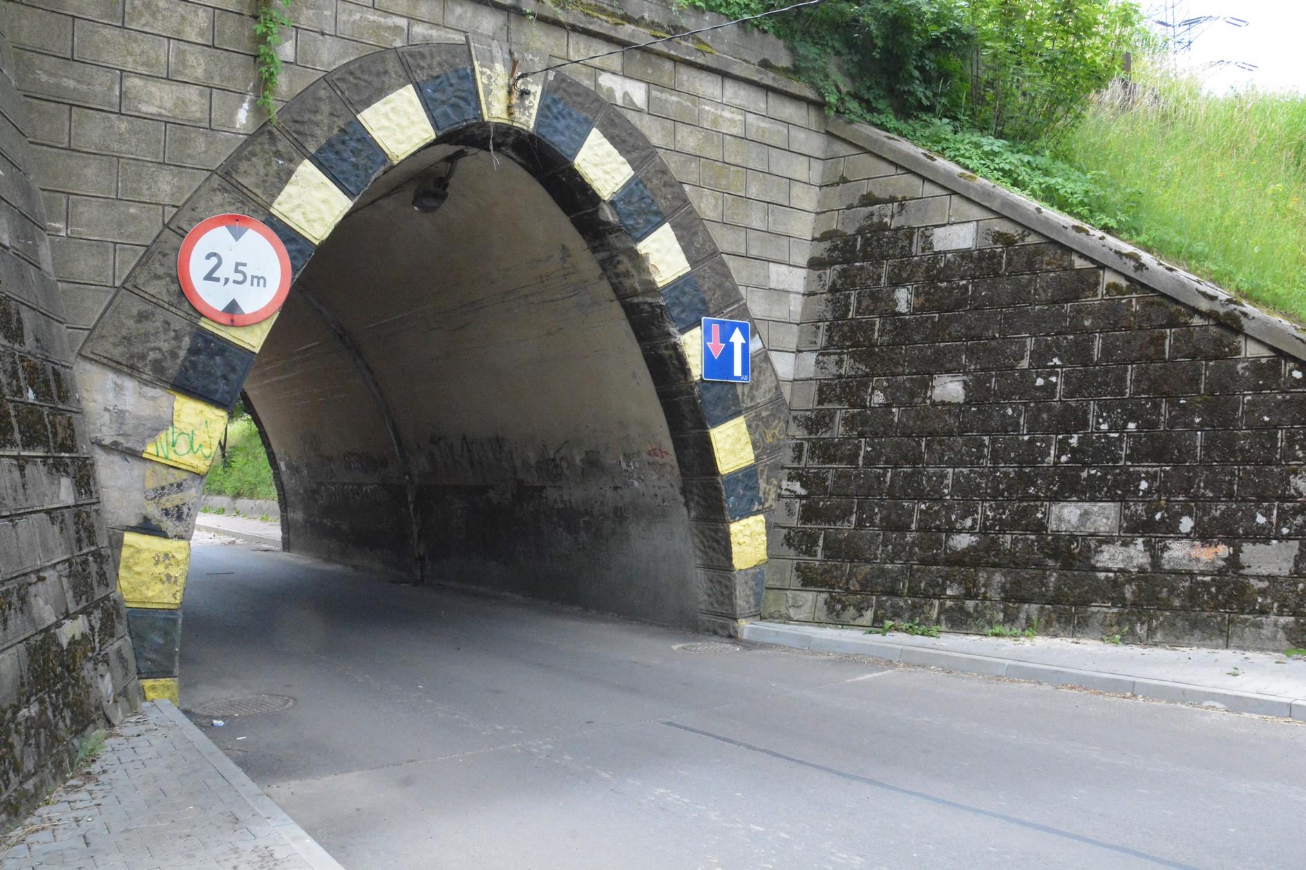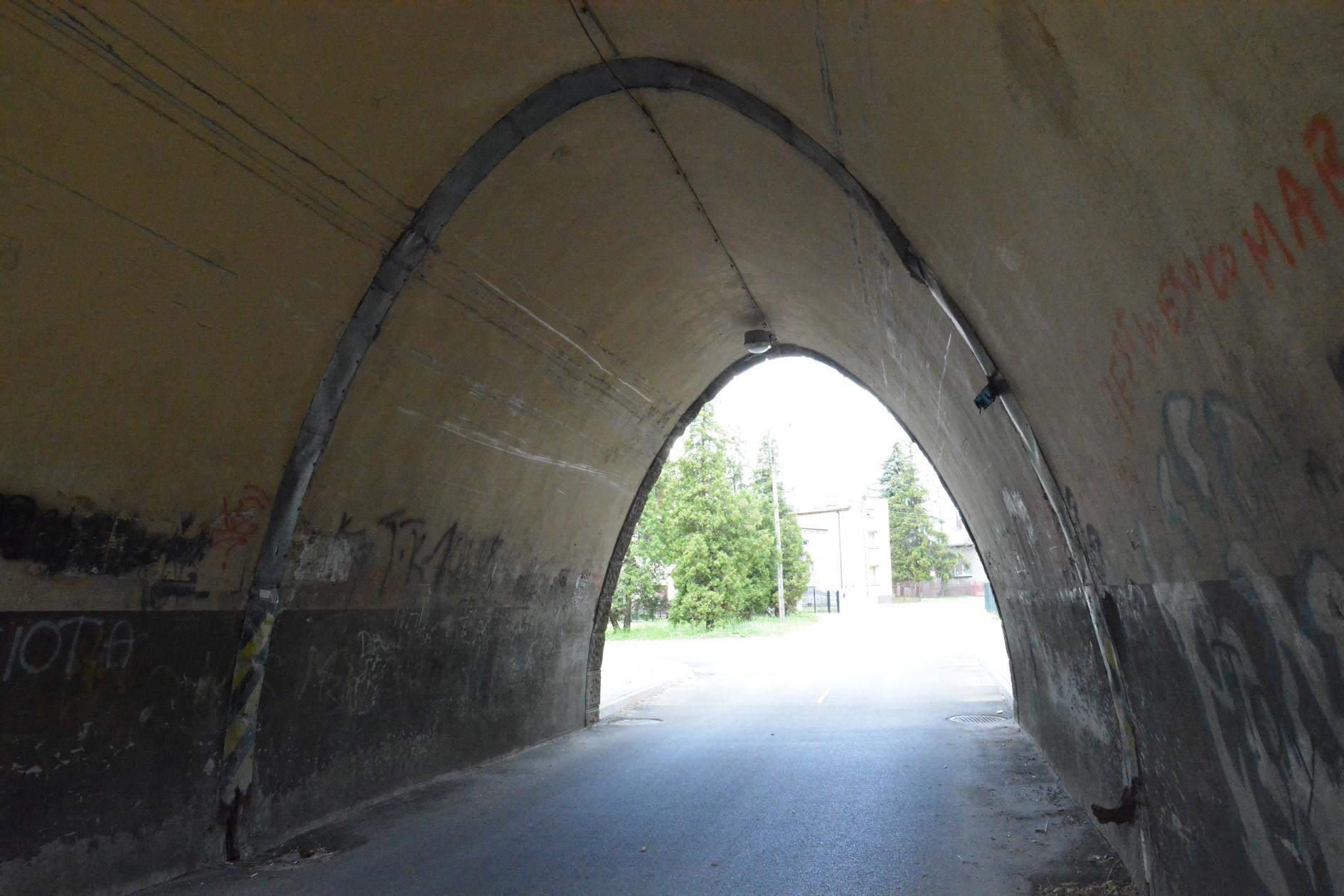 A former railway viaduct connecting the Grodziec Cement Plant to the railway network. Rail track does not exist anymore. Currently, the road under the viaduct is renovated.