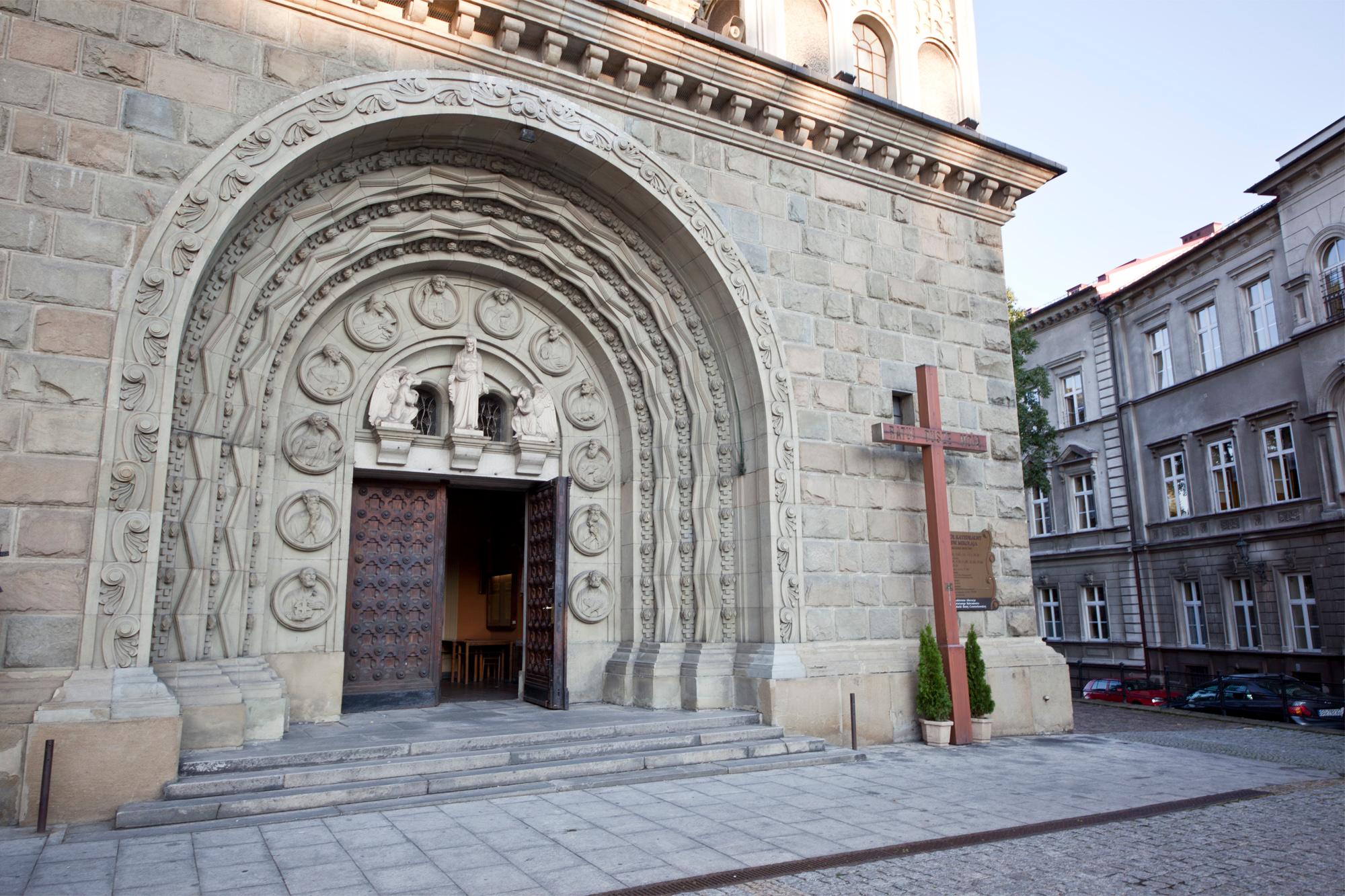 Around the cathedral there are nothing but tenement houses. In front of the sanctuary there is a parking lot.