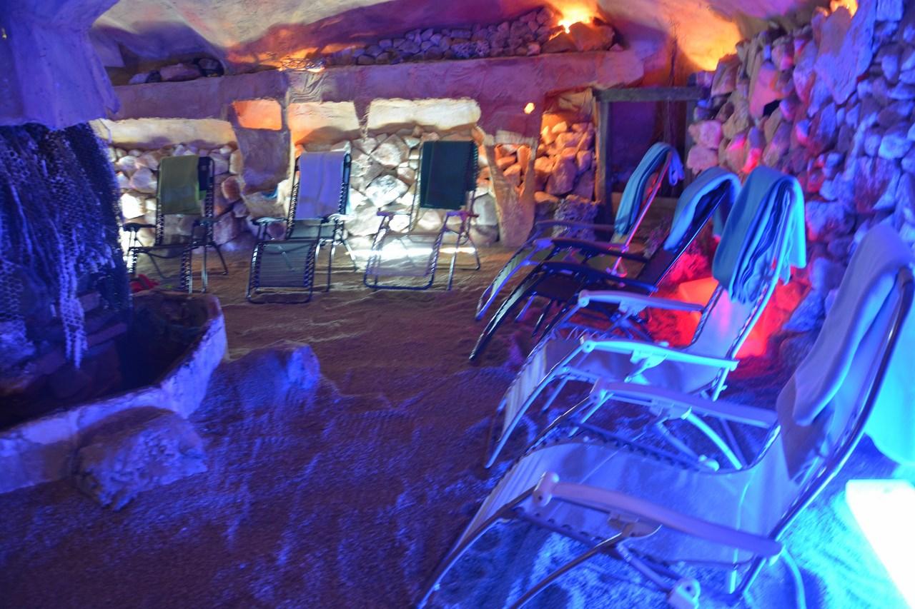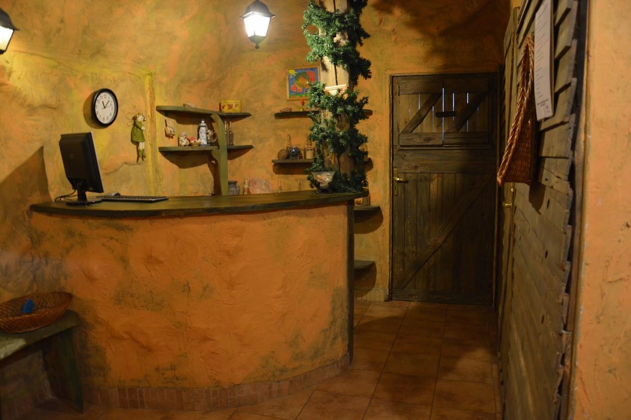 It is situated in the basement, inside one of the buildings of the health recreation facility. In front of the entrance to the cave there is a small waiting room with a reception desk.