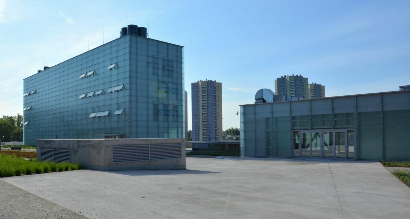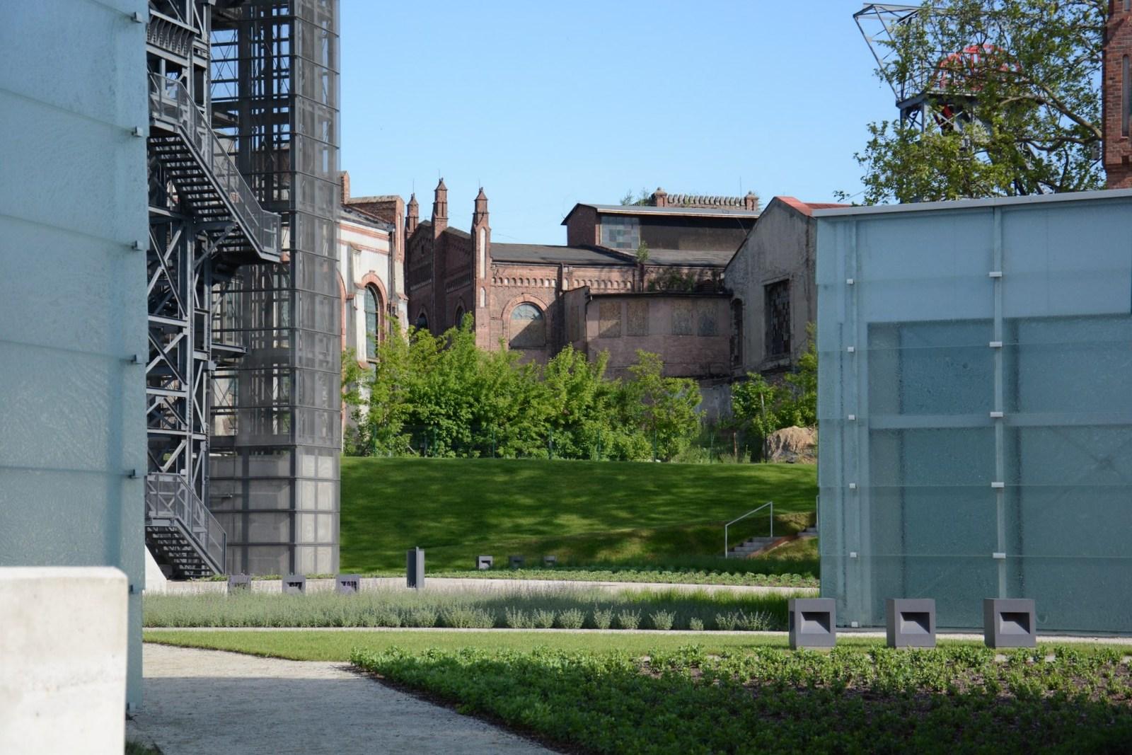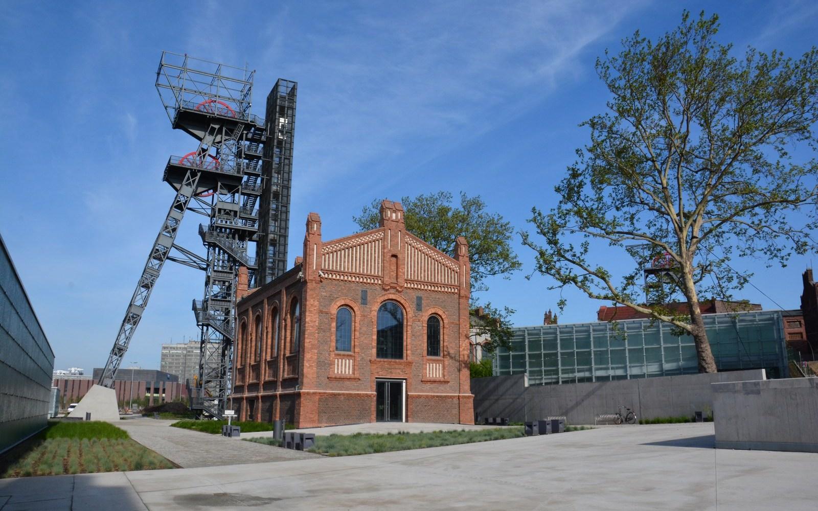 Modern glass towers, built on a post-industrial land, allow better exposure of the exhibits beneath and match buildings of the Katowice Coal Mine perfectly.
