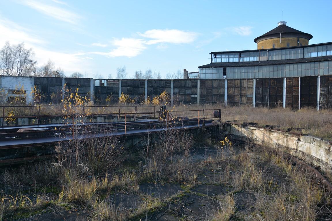 A swivel caster is situated in the Railway Heritage Park in Pyskowice. In the middle of a big square, next to the depot building there is a metal construction with a tin hut. The swivel caster was formerly used to change the direction of the locomotives’ movement. Currently it is one of the exhibits, a little worn-out and rusty.