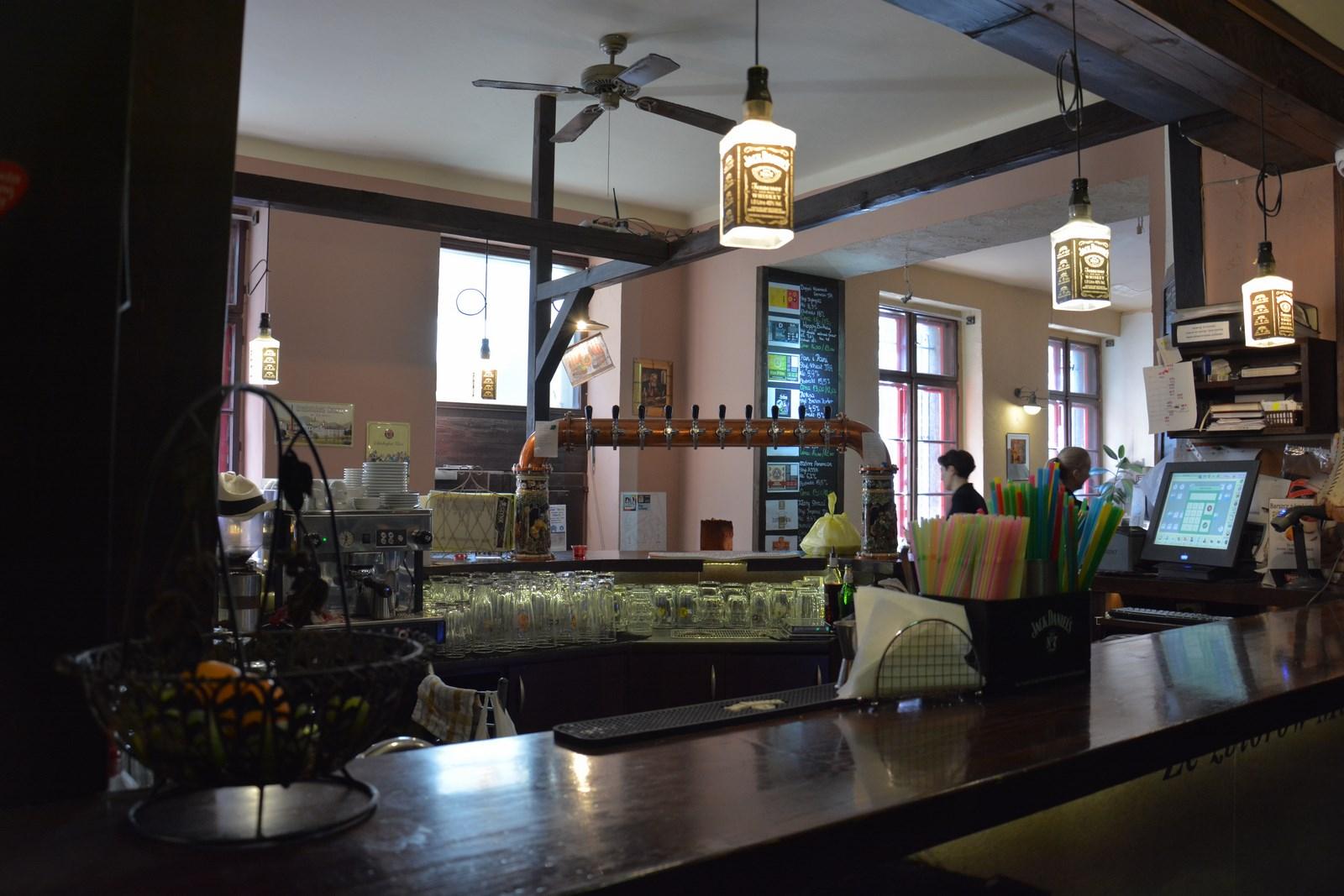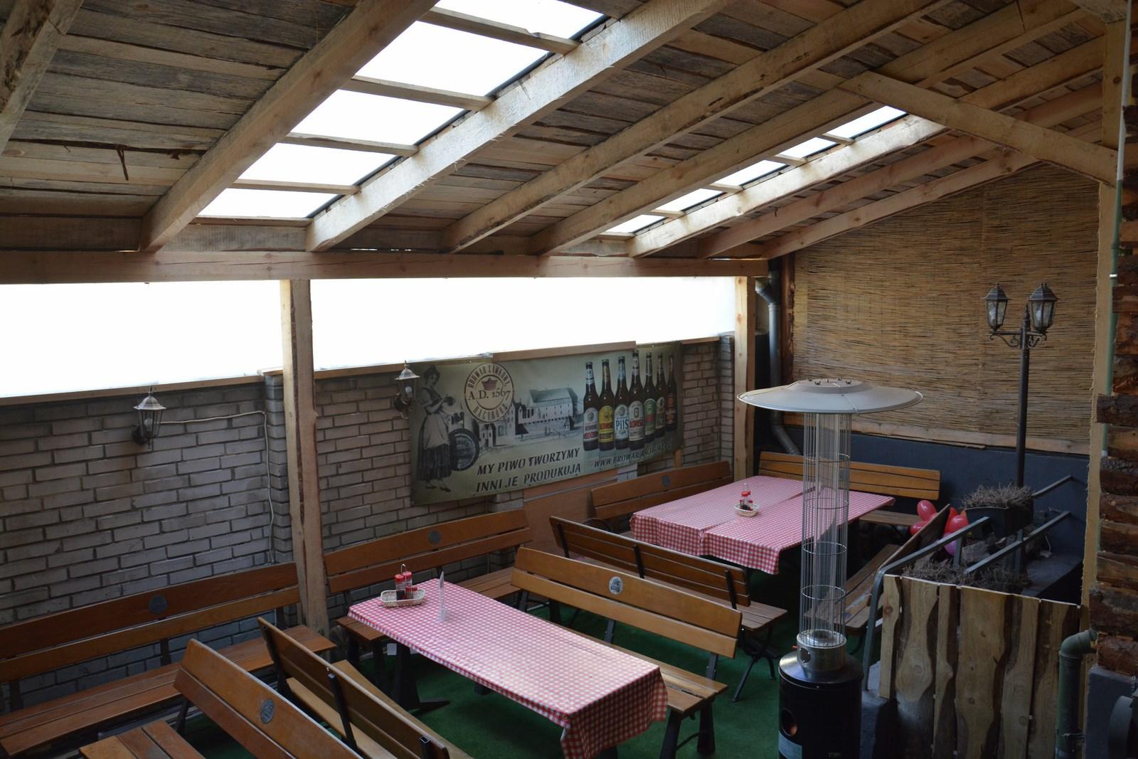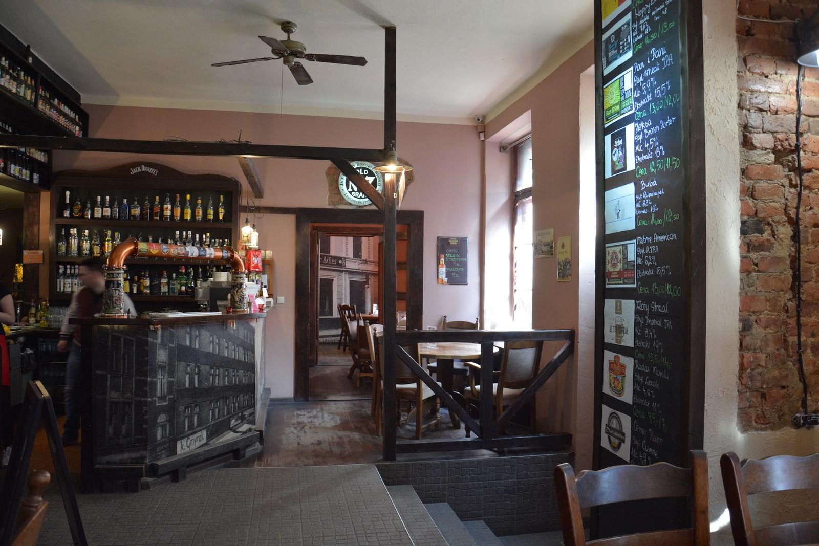 A pub (restaurant) located in Gliwice, in a tenement house next to the market square, which makes the place specific. A big, red door lead to the pub and windows with shutters have been barred.