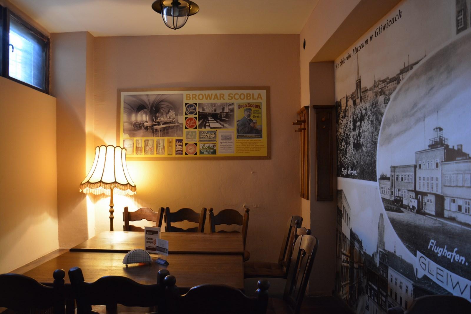 Walls have been decorated with a photograph wallpaper made of old photographs of Gliwice.