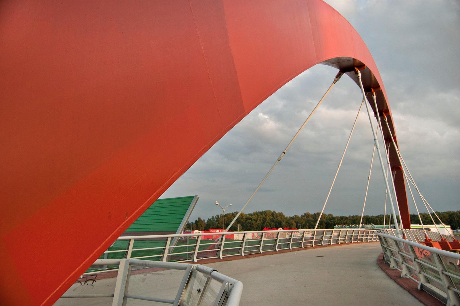 Its construction took one year, official opening took place in 2007. The length of the footbridge is 67 meters. Modern design and shape attract attention. The footbridge is secured by the safety barriers with the elements of glass and dominated by colour red.