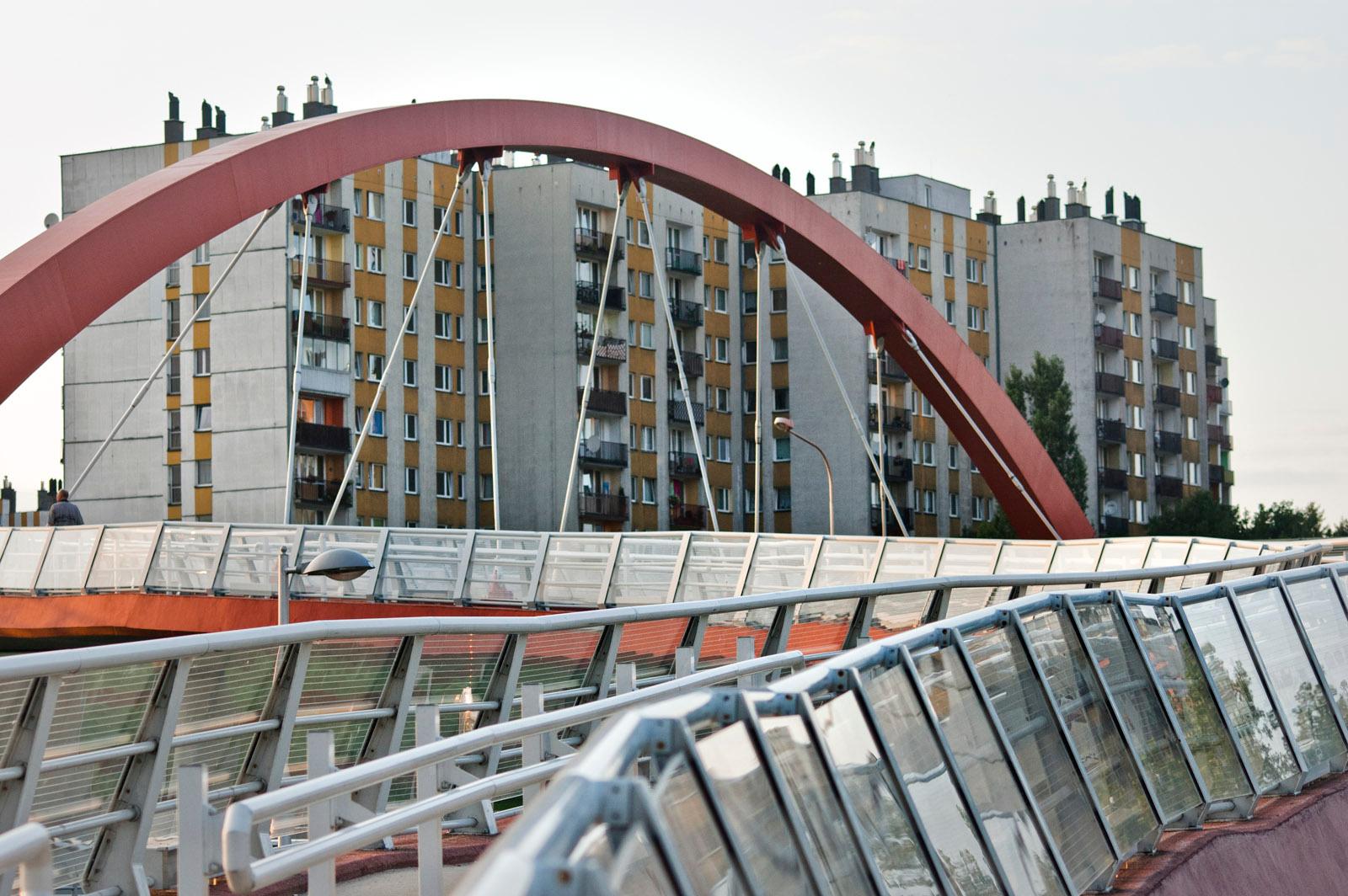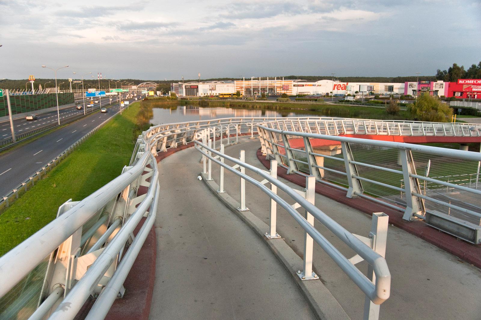 The footbridge for pedestrians located over the A4 Highway in Katowice. It connects the Paderewski estate with the Trzy Stawy Shopping Centre premises.
