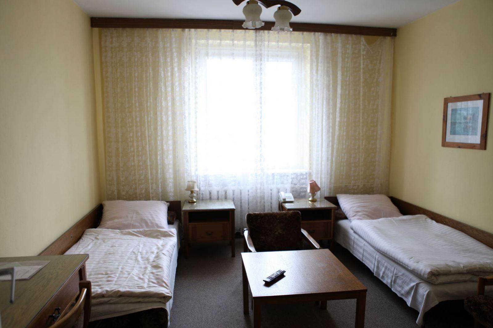 The hotel located in the big sport centre premises in Katowice. The big, three -storeyed, laid out on the square plan building consists of: