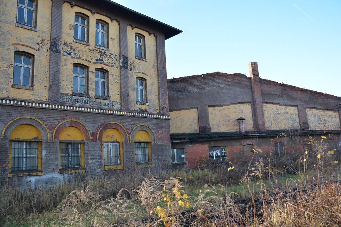 The office building is located in the open-air Railway Museum in Pyskowice along with the number of historic rolling stock’s pieces of exhibition. The building used to house the plethora of offices and rest and refreshment rooms but is shabby and abandoned at the moment. The flaking paint uncovered the red brick on the building’s elevation.