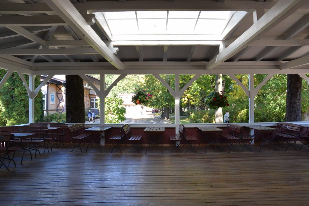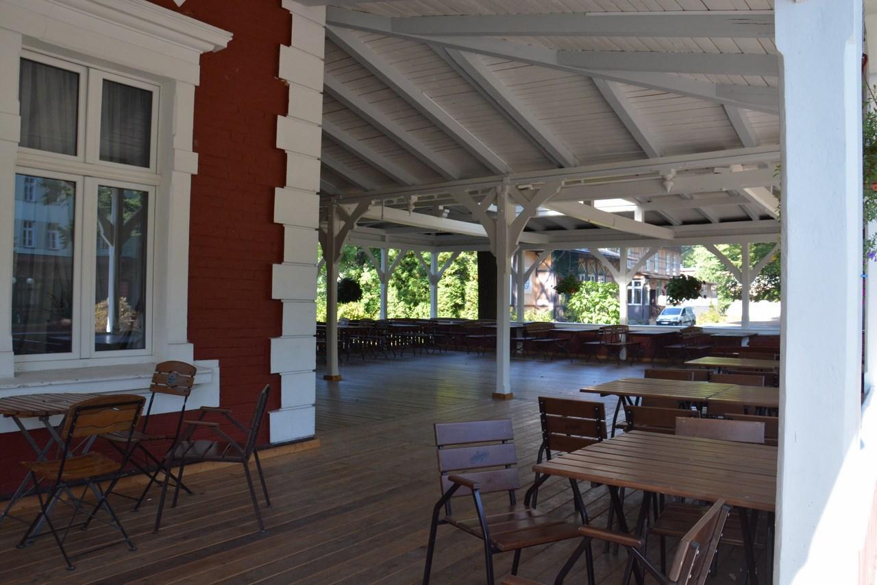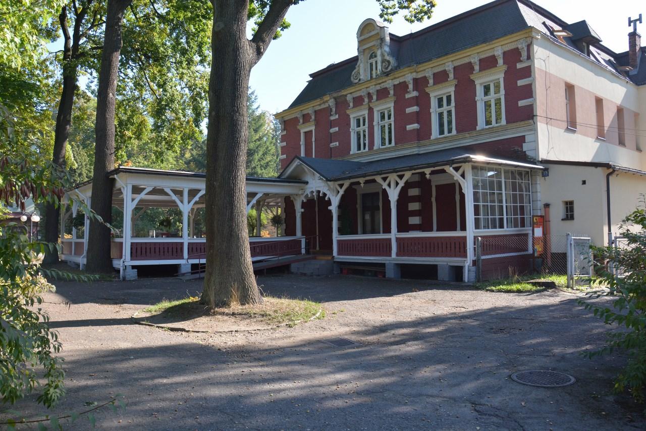 The two-storey, wooded building that arose in the 60s of the 19th century is the remaining of the Health Resort’s prosperity times. Currently the building houses the offices as well as the restaurant with the big dance floor on the terrace. The typical fountain with the sculpted fish is located in front of the building. The complex is surrounded by Zdrojowy Park.