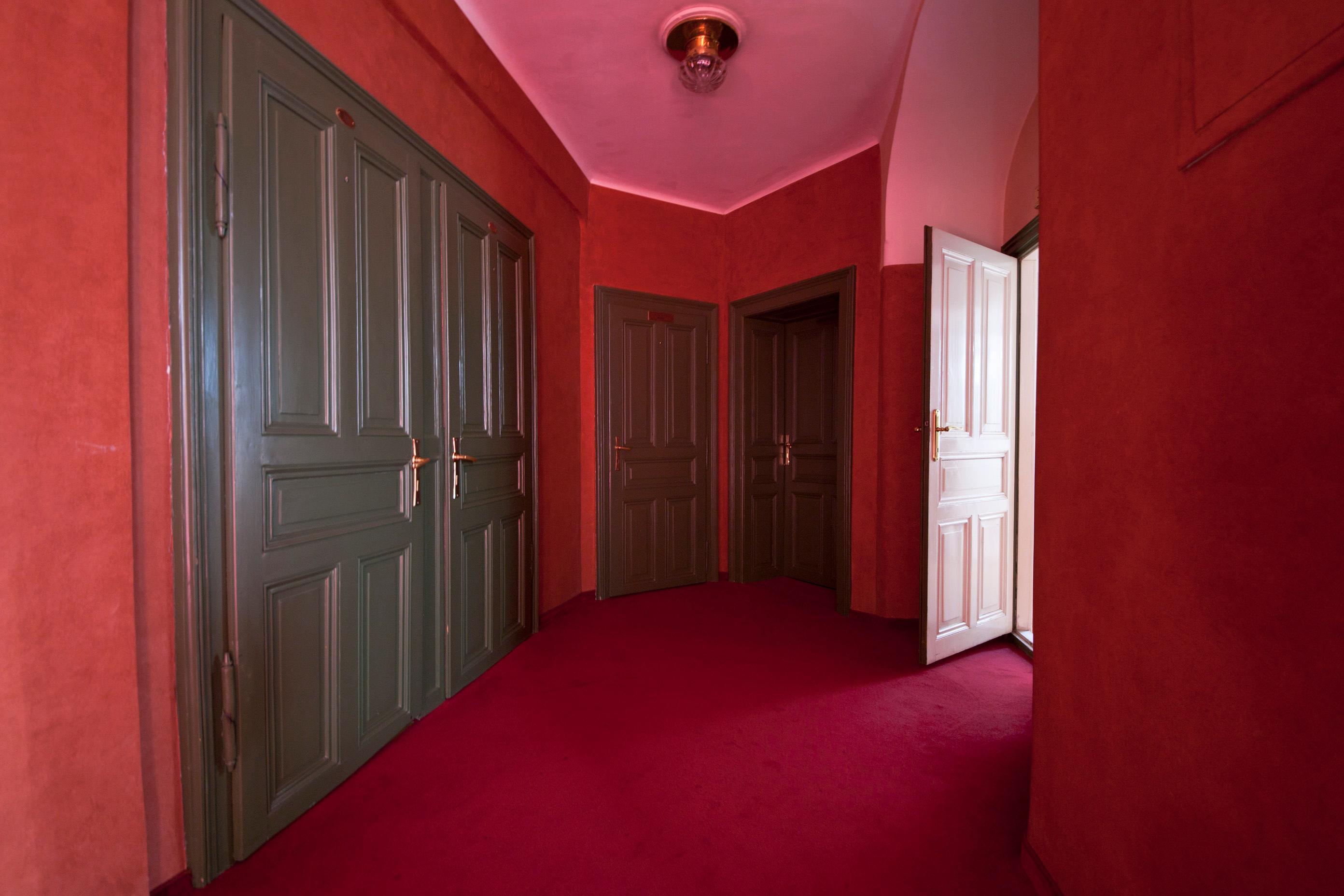 Interiors are dominated by a red colour.