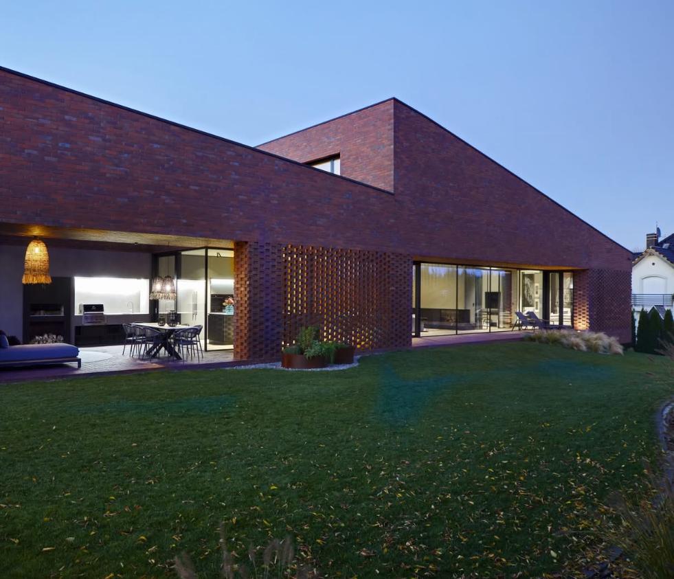Dom industrialny położony przy samym polu golfowym w Mikołowie. To parterowa bryła w połowie zawieszona nad ziemią. Przestrzenie mieszkalne, zlokalizowane głównie w środkowej i wschodniej posiadają liczne przeszklenia i klinkierowe przepierzenia, dzięki czemu gra światłem nabiera tu wielowymiarowego znaczenia. Centralną przestrzenią domu jest obszerny salon z wysokim, spadzistym sufitem, połączony z kuchnią i jadalnią. Również i tutaj cegła gra pierwsze skrzypce. Do środka światło wpada z kilku stron — głównie przez duże przeszklenia od strony północnej oraz sufitowy świetlik. W domu dodatkowo znajdują się 2 sypialnie, 4 łazienki, antresola i sala telewizyjna.