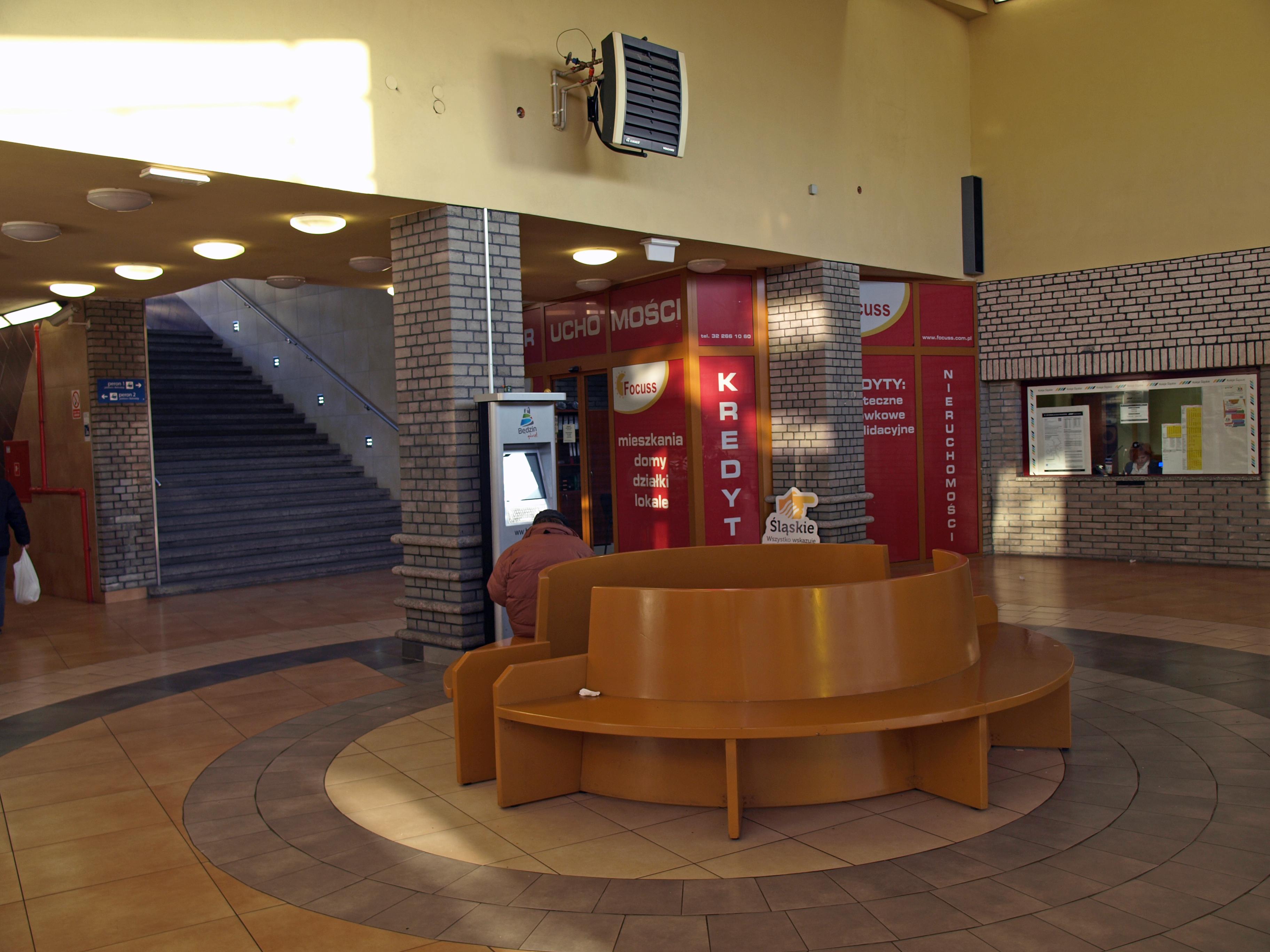 - Ogrzewana poczekalnia wraz z kasami biletowymi, połączona z przejściem podziemnym na drugą stronę dworca,